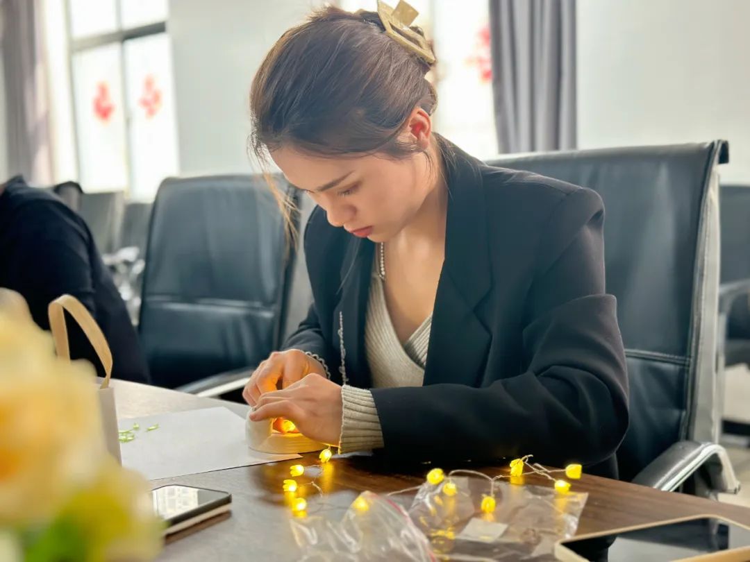 同時(shí),陜西宜路行餐飲管理有限公司開(kāi)展“美麗如你,似花綻放”手工DIY活動(dòng),讓女同胞們?cè)谧约旱墓?jié)日里,通過(guò)DIY彩燈,裝點(diǎn)女性生活,展現(xiàn)流光溢彩的職場(chǎng)生活。
