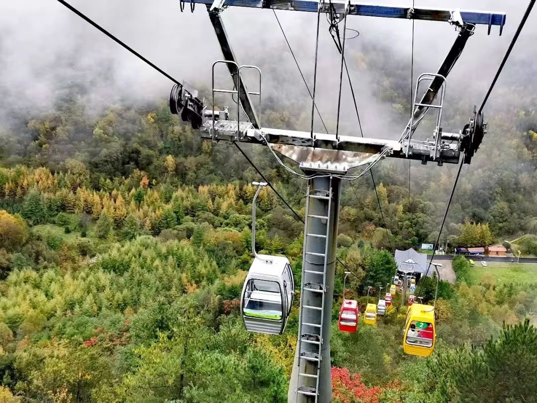 走到山腳下,可乘坐觀光索道到半山道再爬山至山頂。置身于其中,就像在大自然的天然氧倉里,坐看云卷云舒,真正一覽眾山小。