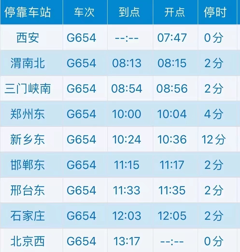 西安至北京西G654次