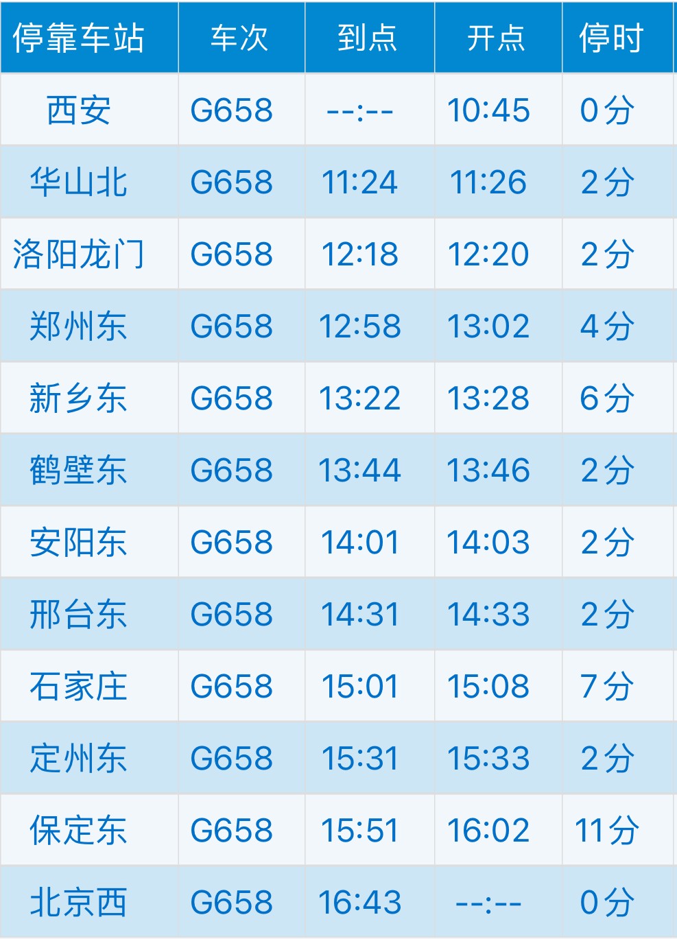 西安至北京西G658次