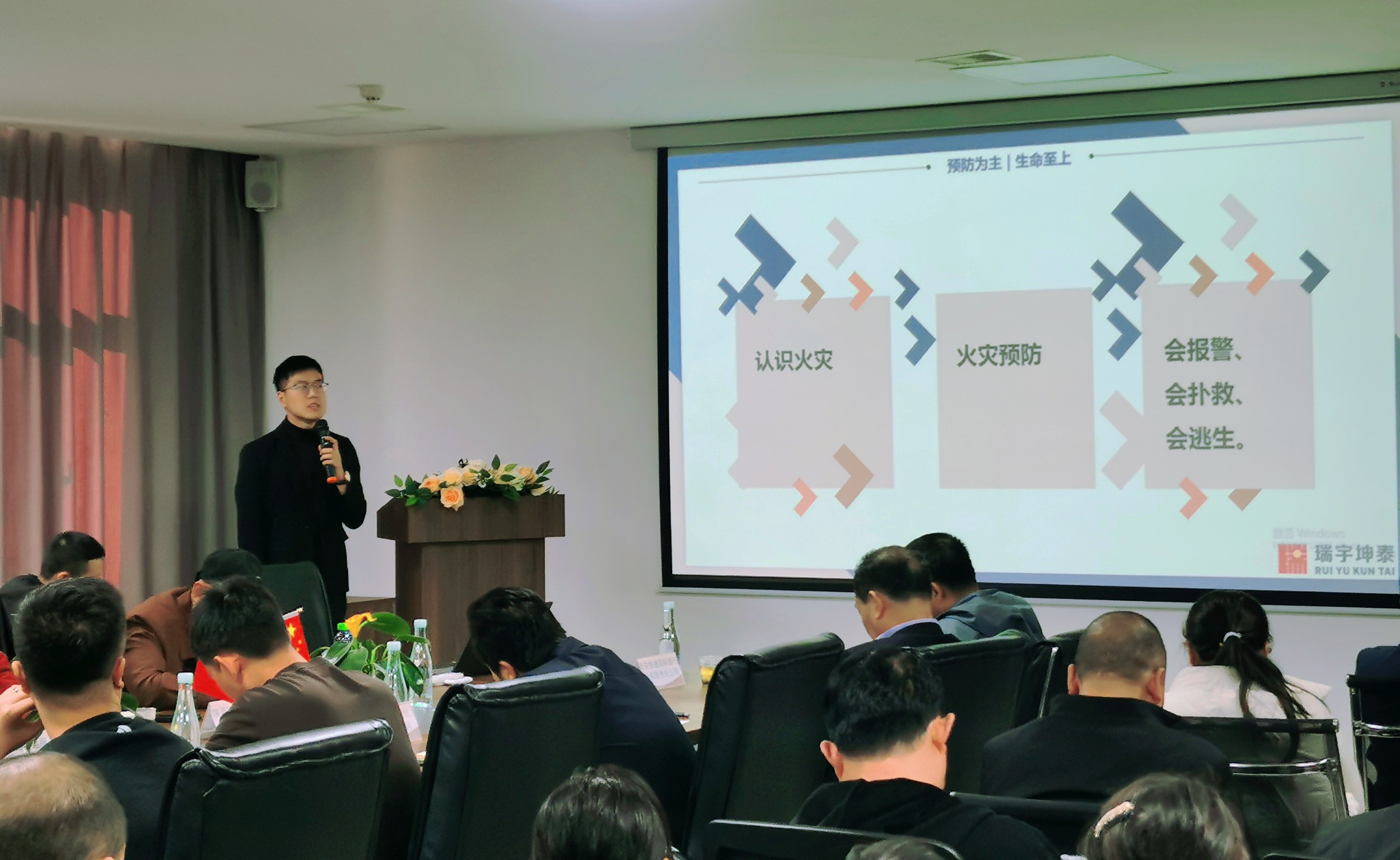 為深入開展“119”消防安全宣傳,特聘請瑞宇坤泰消防公司高級講師王凱進行消防安全知識講座及現(xiàn)場火警實操演練。
