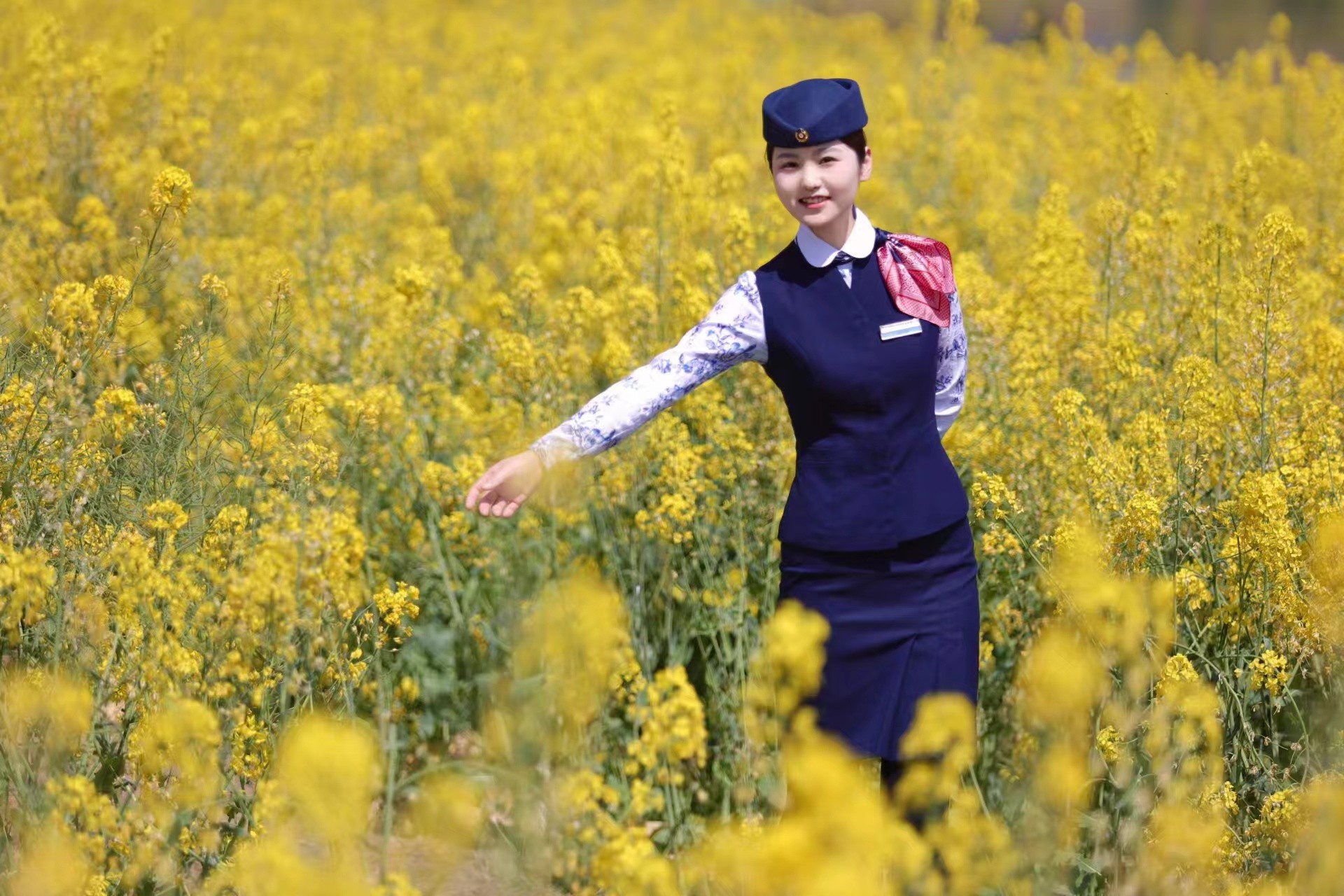高鐵列車在油菜花海的映襯下,如同一道穿梭在春天里的亮麗風(fēng)景線。在開(kāi)往漢中方向的G2851高鐵上,有一位漢中本地姑娘,她的笑容如同窗外的油菜花一樣明媚動(dòng)人。她就是陜西宜路行餐飲管理有限公司的高鐵餐服長(zhǎng)張紫薇。每天,她以熱情的笑容和專業(yè)的服務(wù)風(fēng)范,為旅客們提供細(xì)致入微的列車餐飲服務(wù),讓旅客們欣賞著沿途的美麗景色,享受著高鐵特色美食,將家鄉(xiāng)陜西的名片傳遞給更多的人。