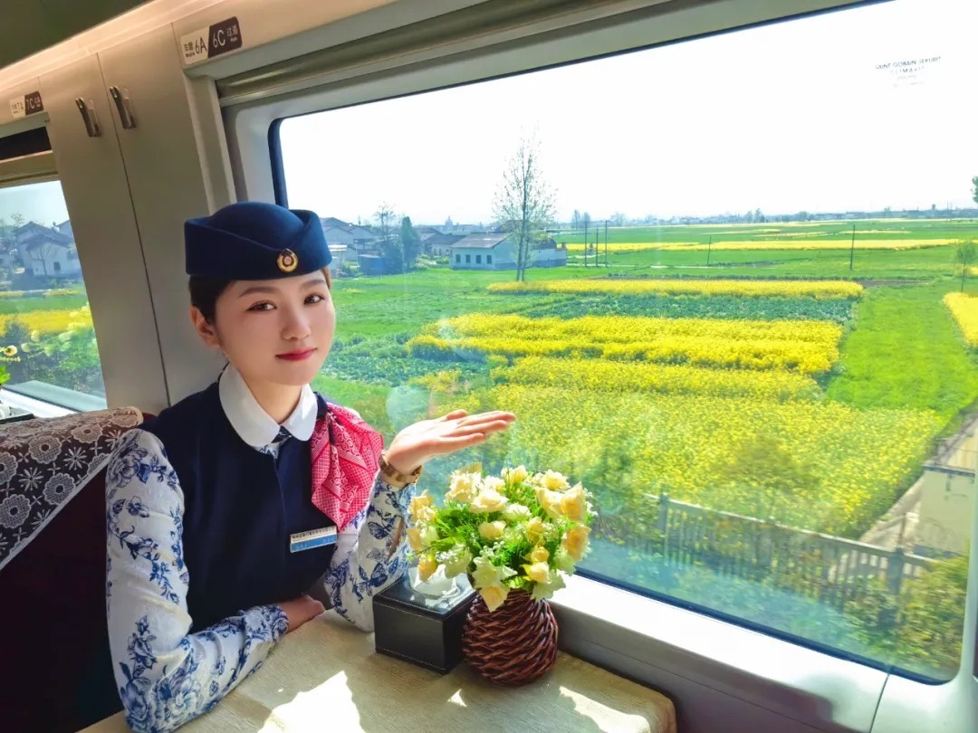 隨著列車的飛馳,張紫薇忙碌的身影在車廂內(nèi)穿梭。她熱情地為旅客們提供各類餐食服務(wù),并與他們分享著家鄉(xiāng)的風(fēng)土人情和油菜花海的美麗。她的笑容和熱情,讓旅客們感受到了家的溫暖和旅途的快樂(lè)。