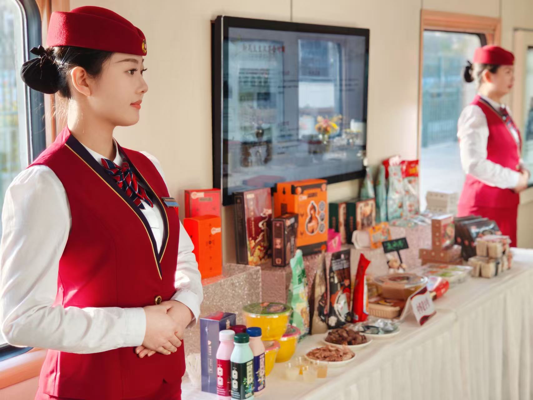 列車內(nèi)設(shè)置了冷鏈餐食、熱鏈餐食、中華老字號(hào)、飲品及茶歇等5個(gè)特色展示區(qū),全方位展示了西鐵局中央廚房在鐵路餐飲領(lǐng)域的創(chuàng)新成果和服務(wù)理念。